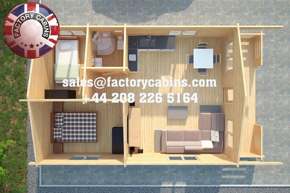 Twin Skin Log Cabin size – 5.5 m x 9.5 m